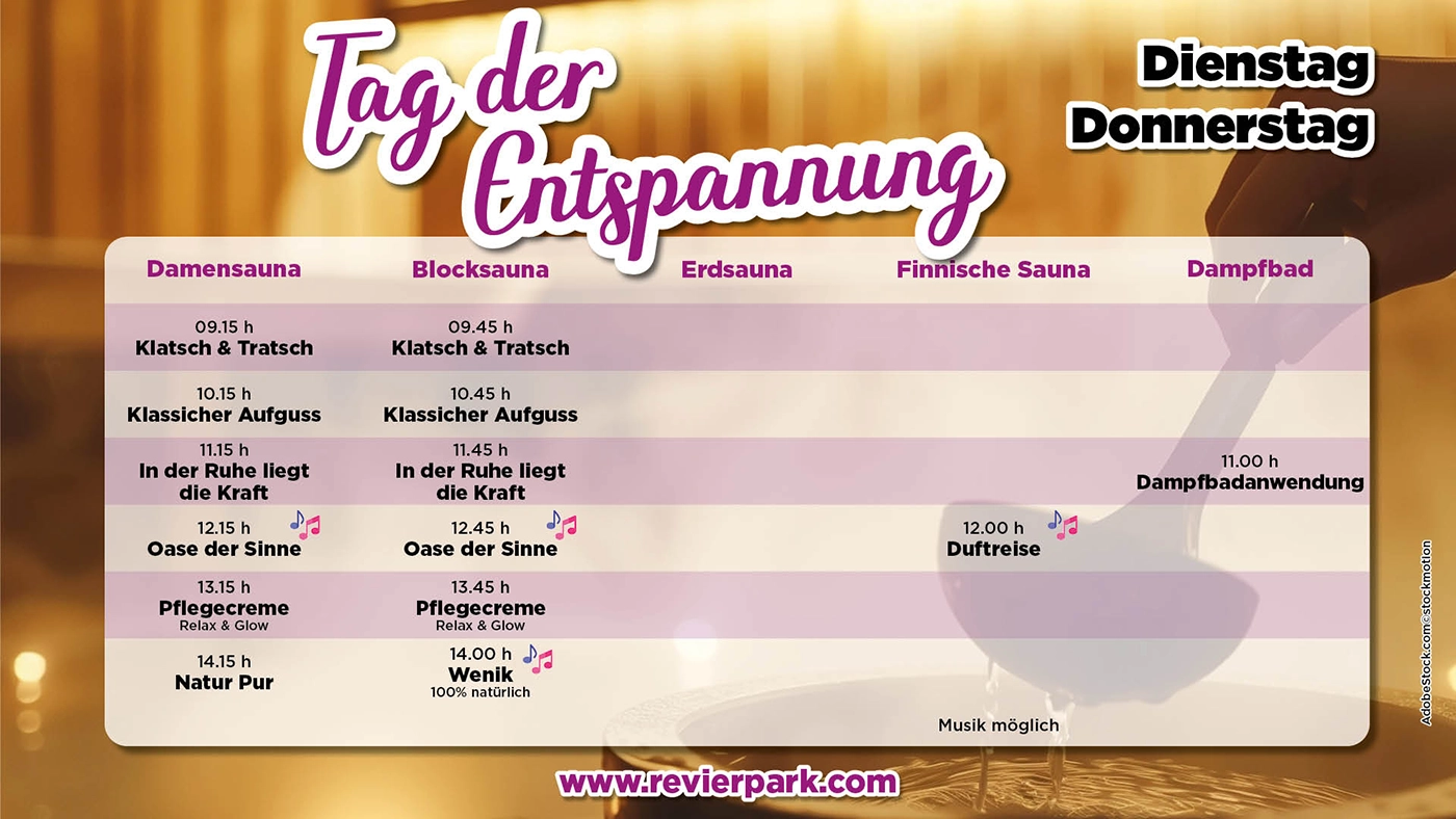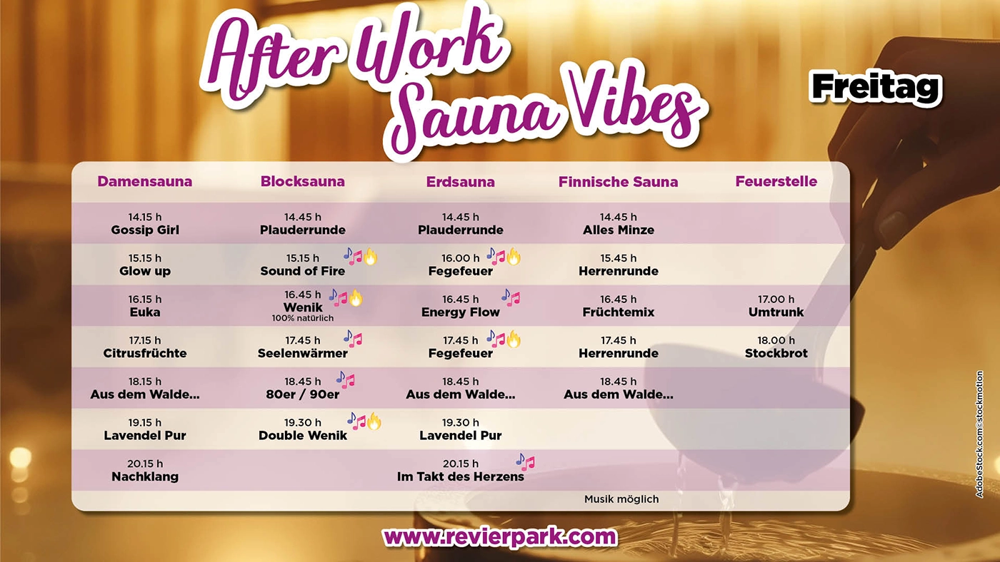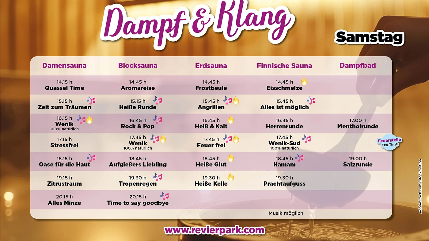 Freut euch auf eine tolle Zeit mit großartigen neuen Specials wie Dampfzeremonien, Duftreisen, doppelt so vielen Wenik-Aufgüssen und besonderen Verteilaktionen!
