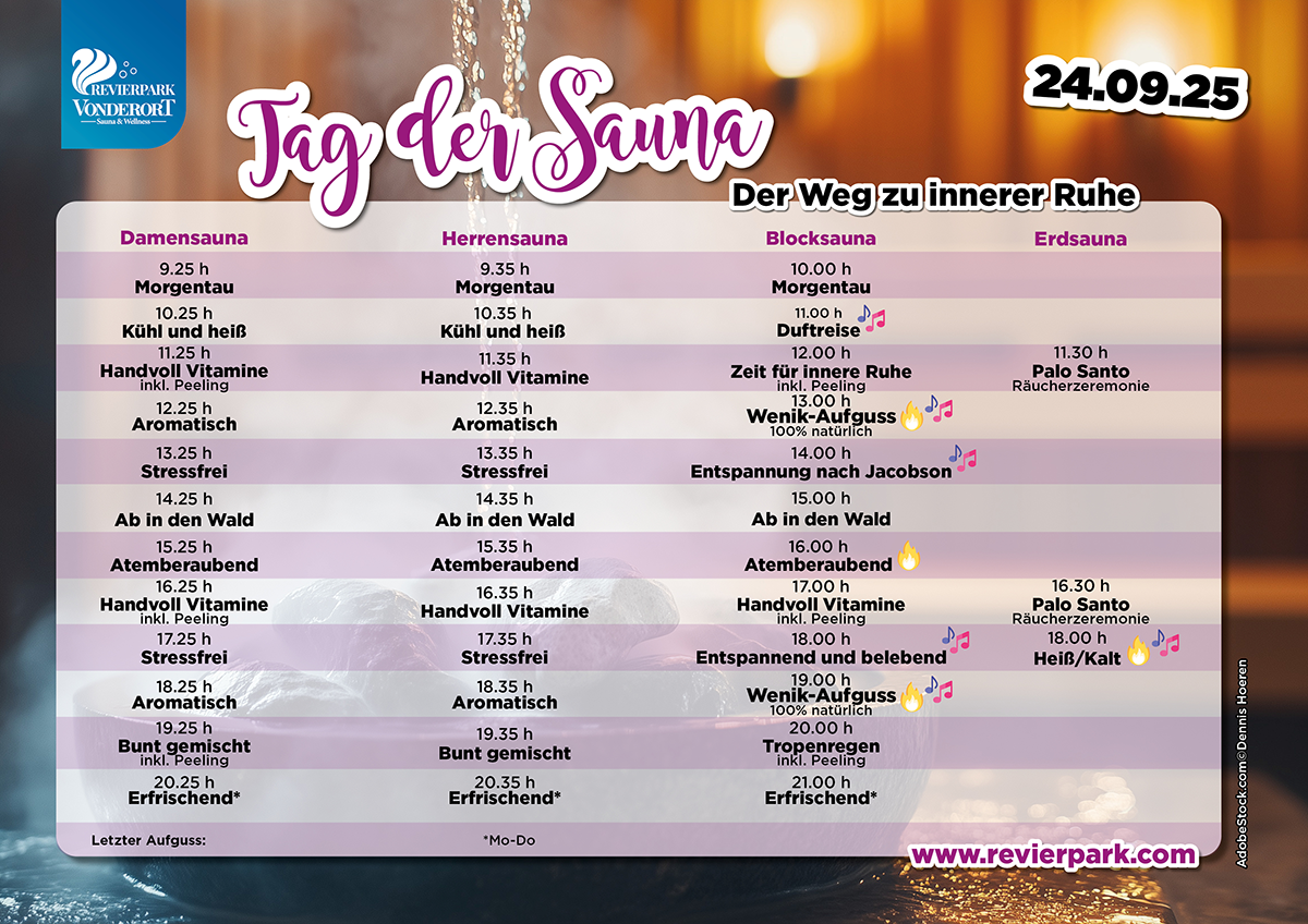 Sauna-Events gelten nicht in Verbindung mit der RUHRTOP.CARD (ab 17 Uhr).